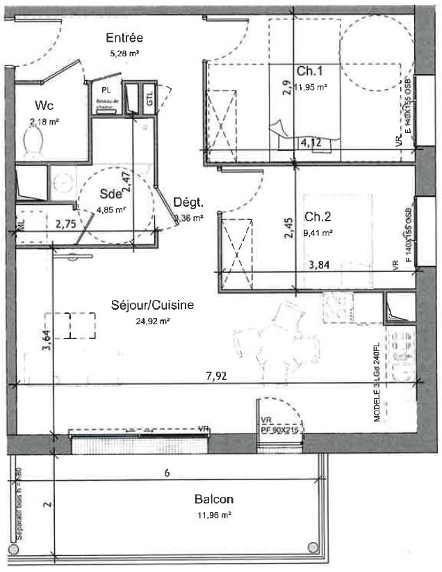 3 pièces – 61.95 m²